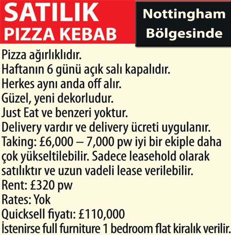 Haftalık cirosu £6.5 – 7K civarı. 29 senedir belediyeden izinli yeri, yakınında deposu ve ev de vardır. En az, 3 kişilik kadro ve 3.5 Ton “B” UK ehliyet gerekli.
