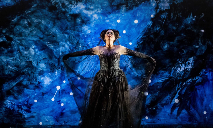 Soprano Tuuli Takala, gecenin en çok beklenen anlarından biri olan “Queen of the Night” aryasında olağanüstü performansıyla sahneyi dolduracak. Siyah tül elbisesiyle yıldızlarla bezeli sahne önünde yer alan Takala, Mozart’ın en zor aryalarından birine dramatik bir yorum katıyor.