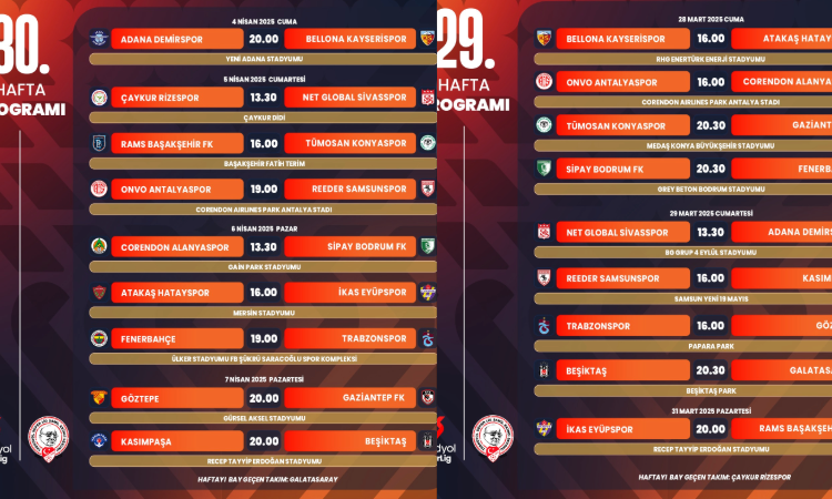 İşte Süper Lig’de 29. ve 30. hafta programı: