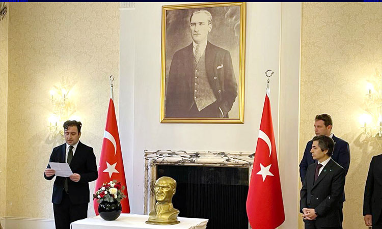 Türkiye’nin Londra Büyükelçiliği’nde Ulu Önder Gazi Mustafa Kemal Atatürk’ün aramızdan ayrılışının 85. yıldönümü dolayısıyla 10 Kasım günü anma programı düzenlendi.