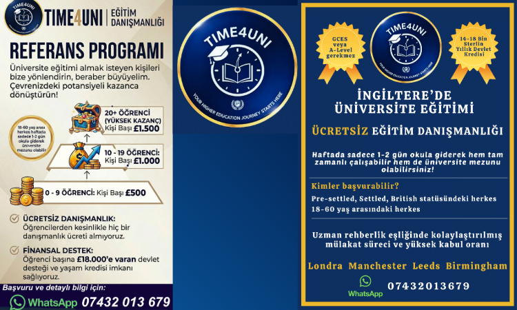 Time4Uni’ye 07432013679 WhatsApp üzerinden ulaşabilirsiniz.