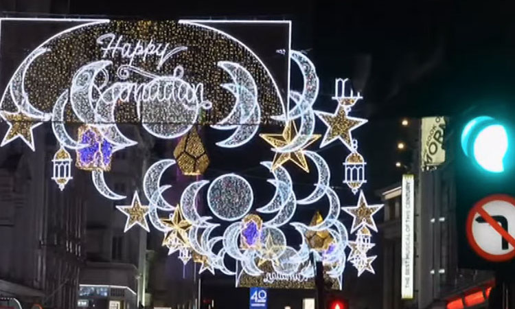 Aziz Foundation adlı vakıf ile Londra Belediyesi işbirliğiyle geometrik desenlerle süslenen caddeye, ışıklarla “Mutlu Ramazanlar” yazıldı.