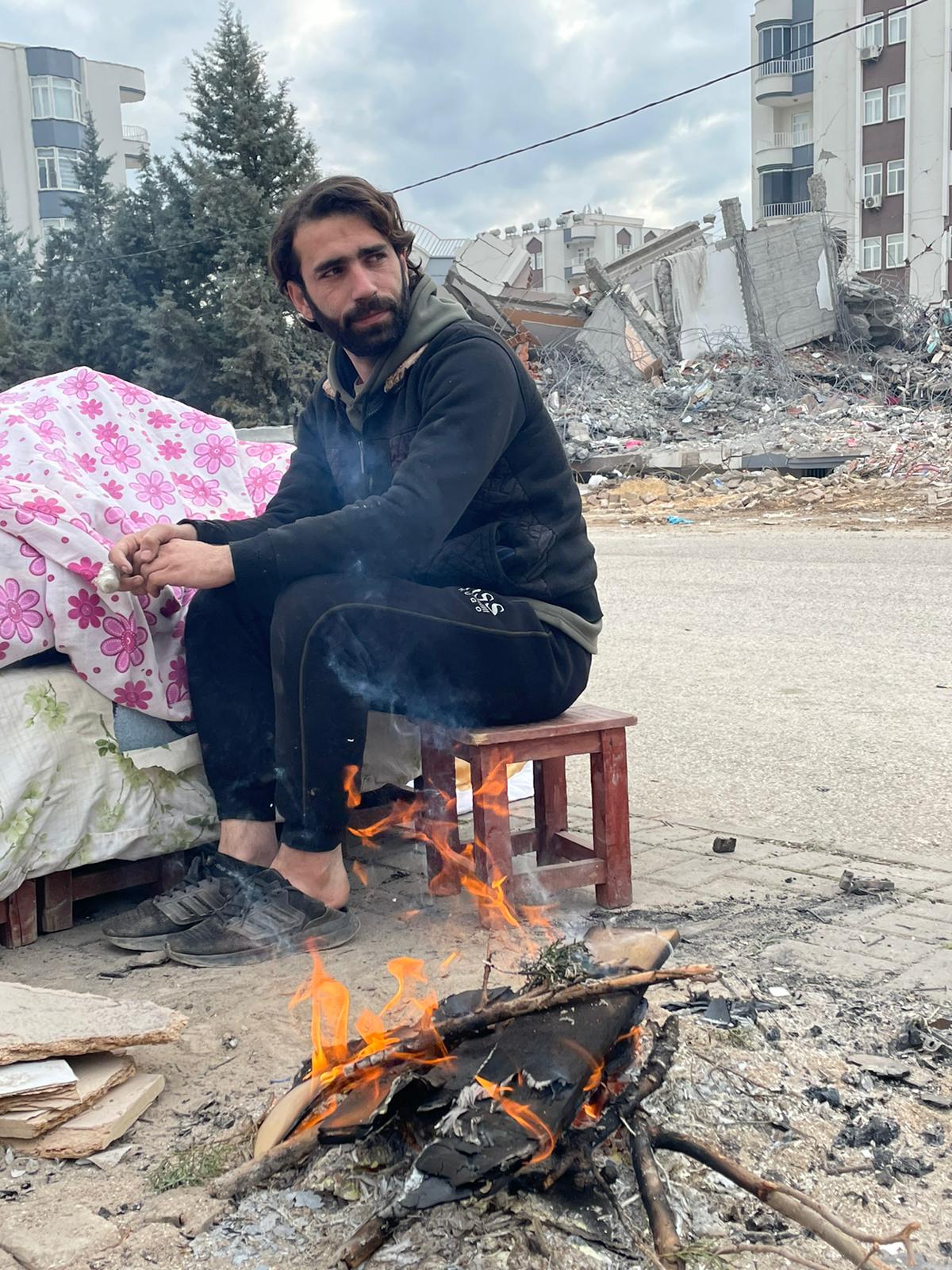 Dondurucu bir soğuk var, çadır ve barınak yerleri yok. Halk sokaklarda ateş yakarak ayakta durmaya çalışıyor.