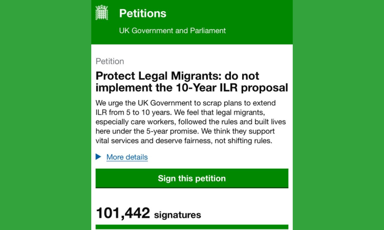 Birleşik Krallık’ta hükümetin Süresiz Oturum İzni (ILR) süresini 5 yıldan 10 yıla çıkarma önerisine karşı başlatılan dilekçe, kısa sürede 100 binden fazla imza topladı.